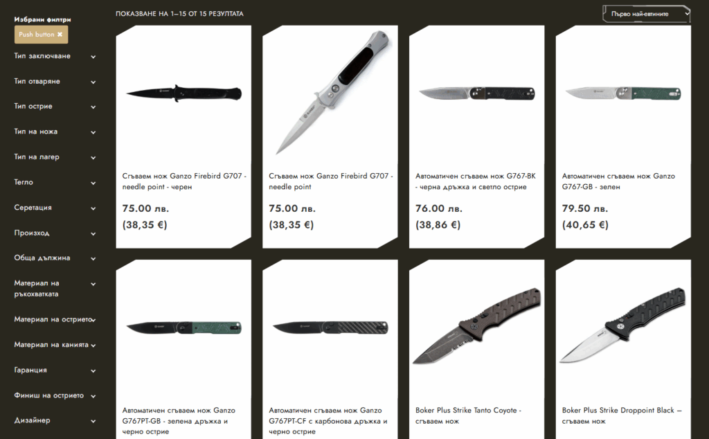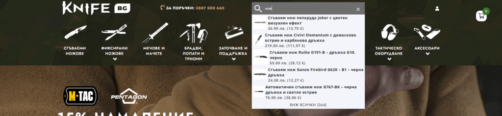 Филтър по атрибут – персонализирано решение. Този филтър е един от акцентите на сайта – изключително бърз, ефективен и интуитивен. Всеки резултат от филтрирането се зарежда с AJAX. Филтъра работи безпроблемно с пагинацията и order by филтрите