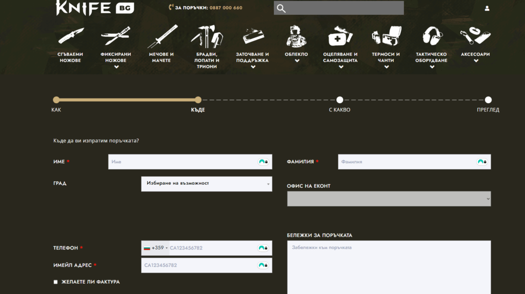 Количка и многостъпков Checkout – напълно персонализирани, с интеграция за доставки чрез Еконт и Спиди, включващи множество защити срещу липсващи или некоректно въведени данни.